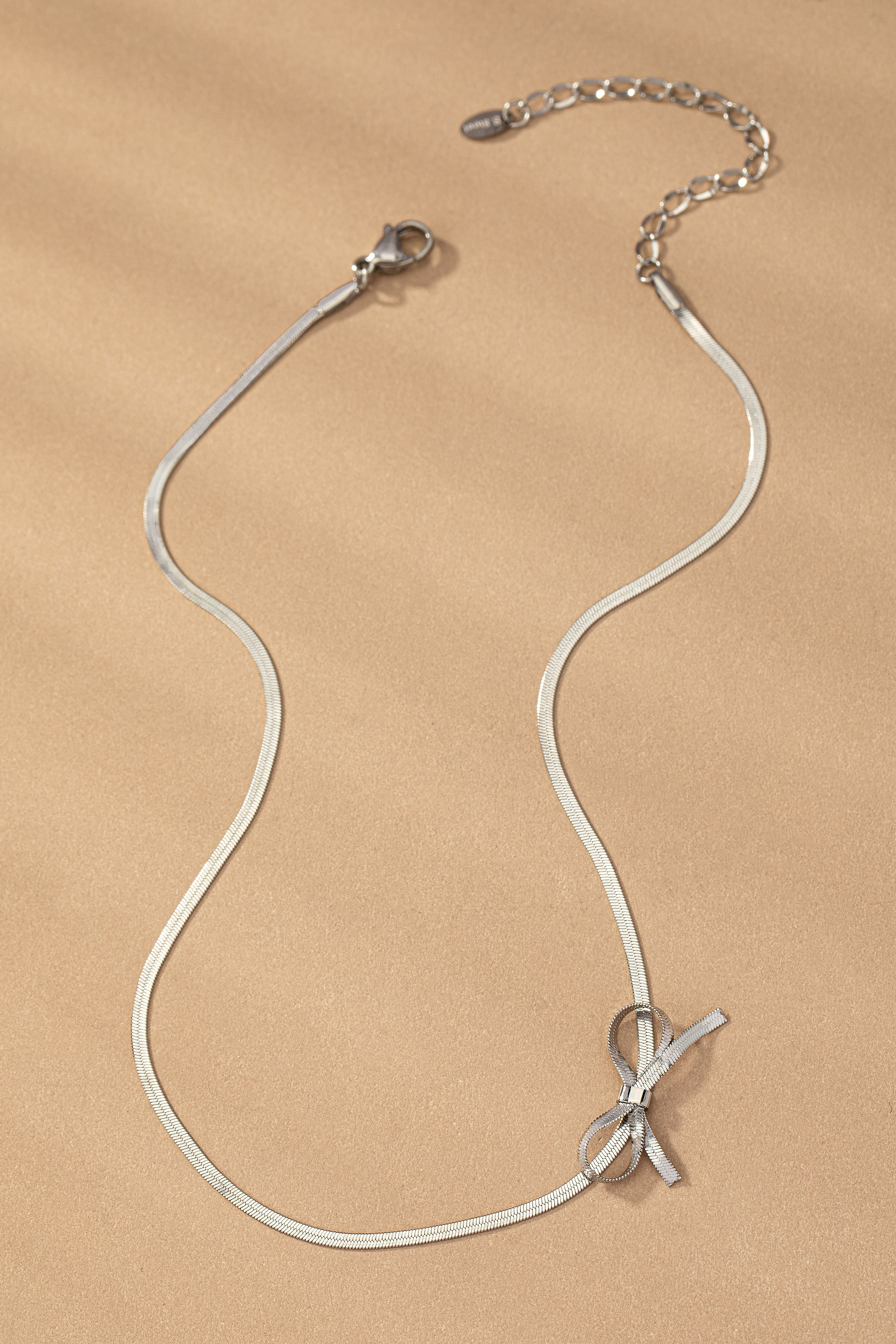 Add a playful twist to your everyday look with this Bow-tiful Chain Choker Necklace. Crafted from sleek, waterproof herringbone chains shaped into delicate ribbon bows, it dazzles in your choice of gold or silver tones. The structured bow detail brings a modern, feminine charm that's perfect for layering or shining solo. Whether dressing up or down, this chic choker offers an elegant yet simple touch that keeps your style effortlessly fun and fresh. Pair with the matching earrings to complete the look.