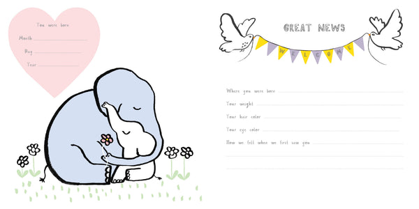 A beautifully designed and illustrated baby record book by the creator of The Rainbow Snail. A great gift to record those precious memories from baby's first year. Hardcover Book with Printed Laminated Cover; 10 x 10 inches; 48 pages.