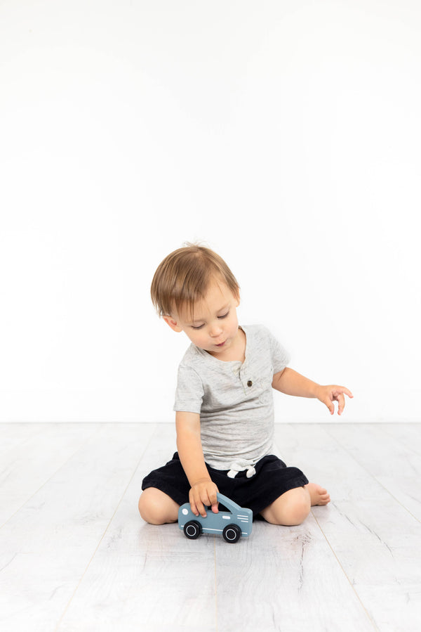 • Includes one wooden, muted blue toy car perfect for exploring during playtime; for ages 12 months and up
