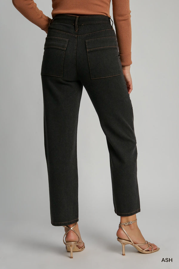 The Miranda Cargo Denim is here to shake up your everyday rotation! These adorable ankle-length pants deliver the perfect blend of function and fun with patch front pockets plus roomy flap cargo pockets on the legs and back. Crafted from sturdy 100% cotton with a structured, non-stretch fit, they maintain their shape beautifully while the stone wash finish and contrast stitching add character. The slim silhouette works magic whether you're pairing them with a fitted top and sandals for an elevated look or throwing on a basic tee and sneakers for laid-back vibes. Zip and button fly keeps things simple. Choose Ash or Light Olive and get ready to make these your new favorite go-to pants.