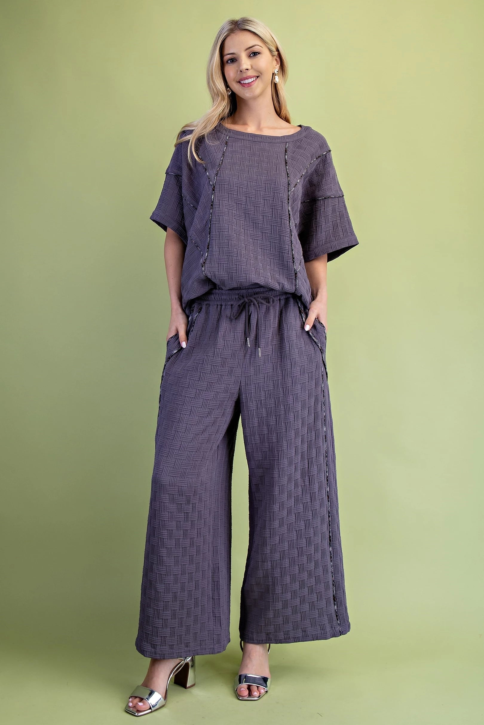 Introducing the Winnie Wide Leg Pants—your ticket to laid-back style that actually works! Crafted with a textured basket weave fabric and finished with playful plaid binding on the pockets and hem, these pants are anything but boring. The relaxed silhouette and elastic waist with drawstring mean maximum comfort without sacrificing style. Pair them with loafers and a blouse for polished vibes, or throw on a graphic tee and sneakers for pure weekend energy. Choose from golden, olive, or slate and get ready to make these your new favorite.