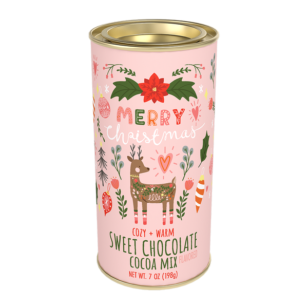 Your customers will get in the festive spirit with our Christmas Deer Sweet Chocolate Cocoa! Each tin is beautifully adorned with charming pink Christmas deer artwork, adding a whimsical touch to your holiday season. This classic double chocolate cocoa mix promises a rich, velvety experience that will warm your customers from the inside out. Perfect for cozy nights by the fireplace or as a delightful treat for guests, just add hot water and stir to create a mug of pure joy. Make your customers’ holiday gatherings even sweeter with this adorable and scrumptious cocoa mix that everyone will love!