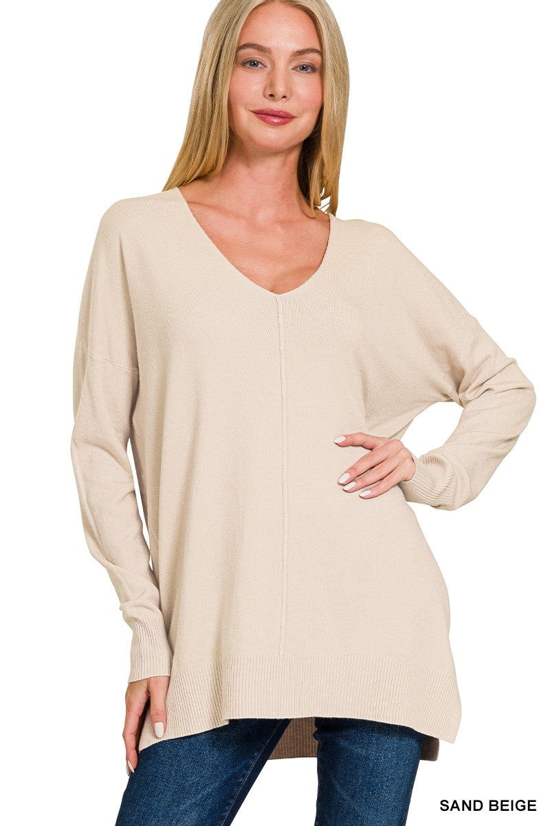 Center Seam Sweater || Black, Light Mocha or Sand Beige