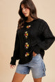 Get ready to fall in love with the In Bloom Embroidered Sweater—where cozy meets colorful! This wool blend cable knit beauty features hand-applied floral embroidery cascading down the front, transforming a classic black sweater into a wearable work of art. Perfect for adding a pop of personality to your everyday wardrobe, this piece celebrates the joy of nature-inspired style with playful charm and timeless comfort.
