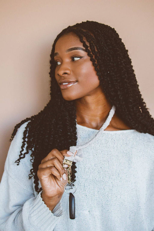 Shop Andi lanyards are the cutest you'll find! This is a very light tan/beige, linen fabric. Get this to hold all your necessities and keep your pockets and hands free, while adding a cute and stylish flair.