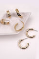 Elevate your earring game with the Simple Elegance Huggie Hoop Earring Trio—three pairs of chic hoops in varying sizes that let you switch up your vibe whenever you want! Mix and match for endless styling possibilities, or rock each pair solo for that perfect everyday-to-fancy transition. With gold plating, sturdy post backs, and double E-coating to keep them looking fresh, these timeless beauties work just as hard as you do. Whether you're dressing up or keeping it casual, this trio has you covered.
