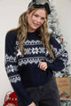 Embrace the magic of the season in this charming cable knit pullover! Featuring a delightful jacquard pattern of prancing reindeer and snowflakes against a rich navy backdrop, this wool blend sweater is your ticket to cozy winter bliss. The classic crew neckline, drop shoulders, and long sleeves create an effortlessly chic silhouette perfect for holiday gatherings or lazy fireside nights. Whether you're sipping cocoa or spreading festive cheer, this dreamy knit delivers warmth and whimsy in every stitch.