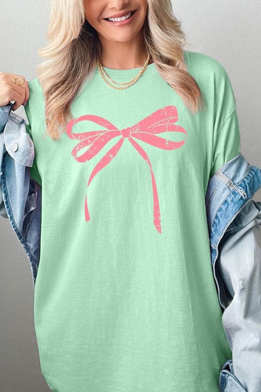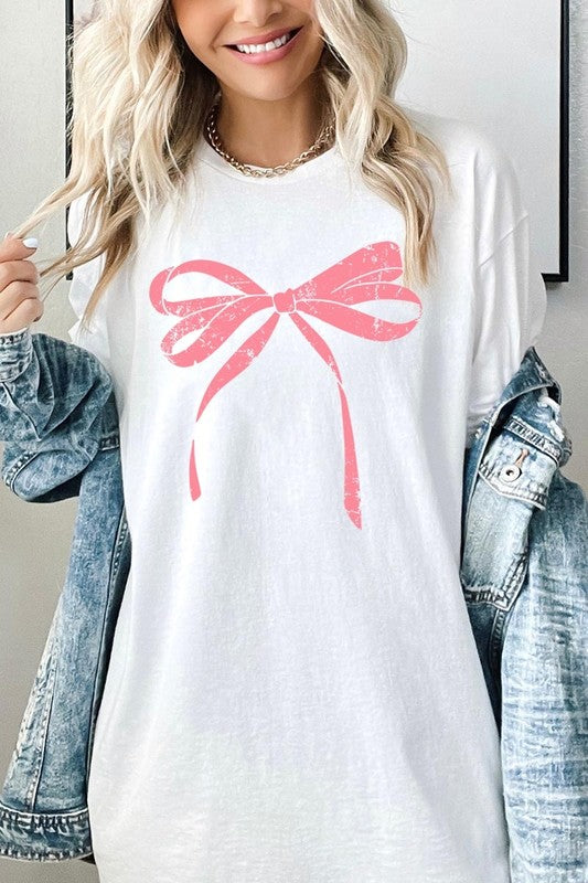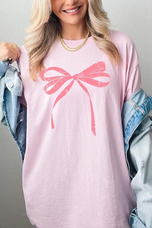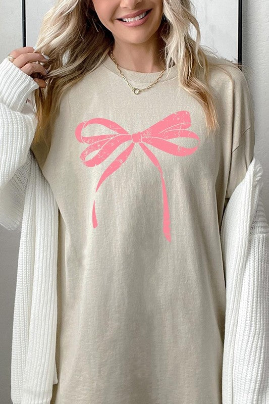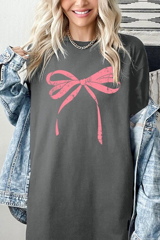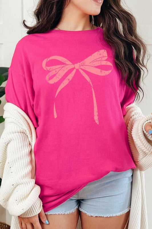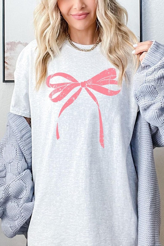 Pink Valentine Bow Graphic Heavy Cotton Tee.