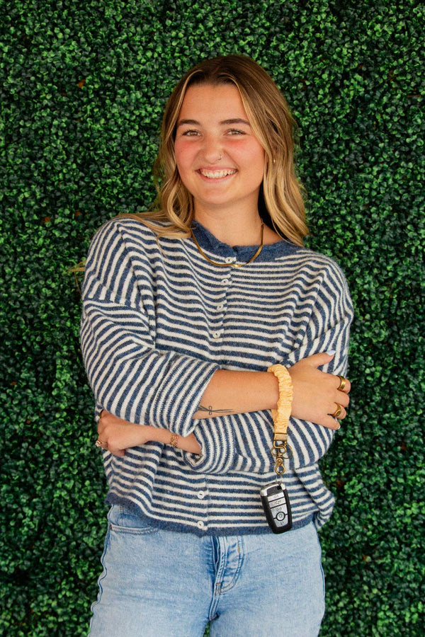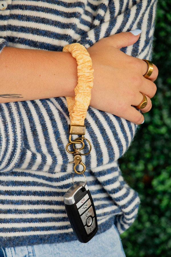 This keychain is part of our Andi X Kaitlyn & Faith Collection! Andi keychains are the cutest you'll find. This keychain is the prettiest yellow floral pattern printed on a cozy linen material, and is absolutely adorable. This one will be perfect to wear all year round! You can't go wrong with it-it'll look cute with all your outfits. Get this to hold all your necessities and keep your pockets and hands free while adding a cute and stylish flair.