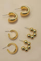 Elevate your earring game with this fabulous trio of classic hoops! Get three stunning pairs in varying styles—perfect for mixing and matching or rocking each one solo depending on your vibe. Whether you're going bold or keeping it simple, you've got options. Crafted with gold-plated titanium posts, these beauties are hypoallergenic and built to last with double E-coating protection. Say goodbye to irritation and hello to endless styling possibilities. Your ears (and your jewelry box) will thank you!