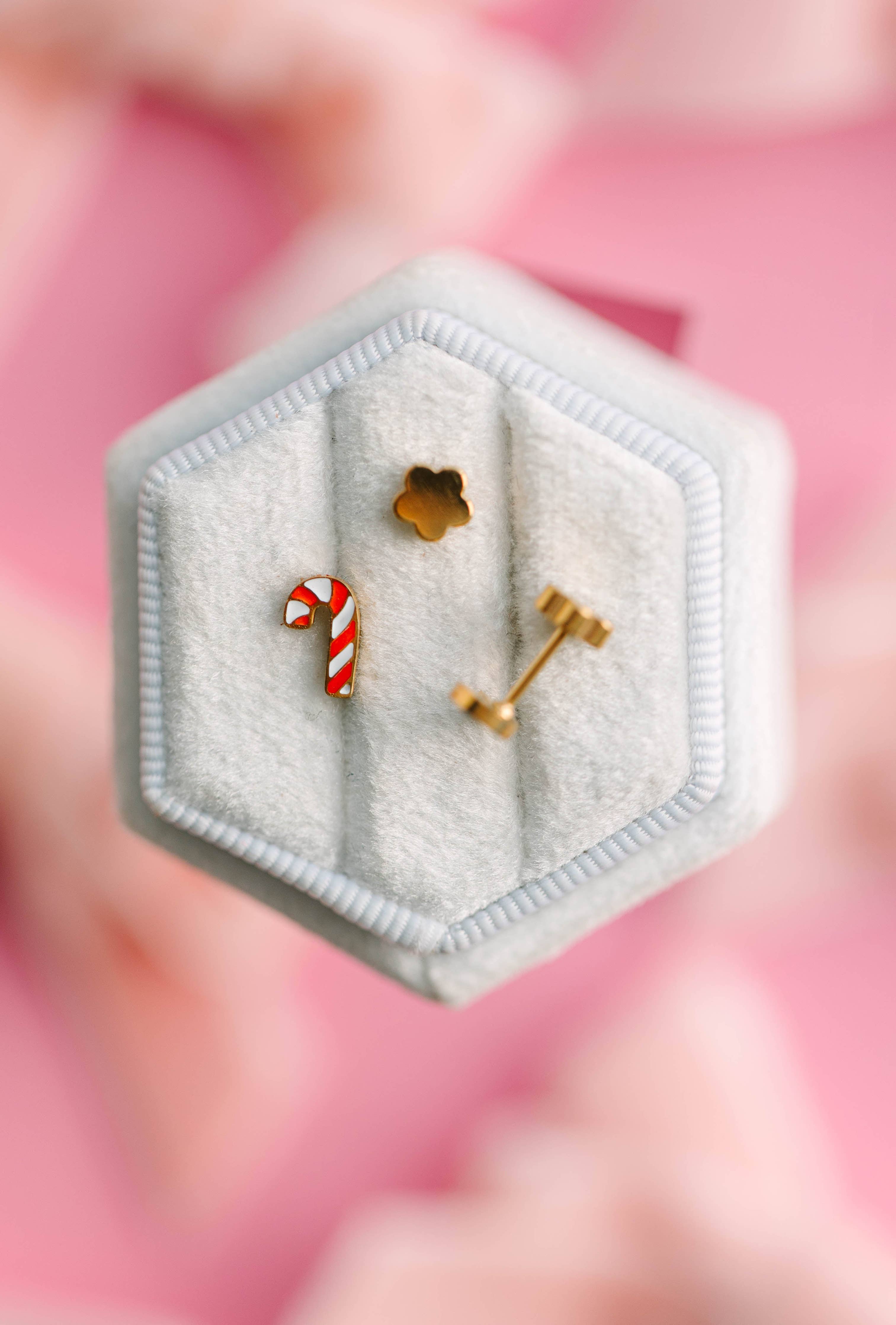 High-quality earrings made for girls with sensitive ears and to join them on their everyday adventures. Materials * Surgical grade stainless steel * 18K gold plated * Lead & nickel free * Enamel * Always hypoallergenic Details * Flat screw-back * Ultra-thin post measuring .8mm (20 gauge) * 8mm post * Waterproof - can be worn in the pool and bath Exclusive Pierced Co Extras * 100% guaranteed to be sensitive free or your order is free * Each order comes with an extra pair of backs