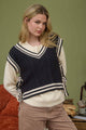 Add a playful twist to your wardrobe with this Varsity Tie Sweater Vest. A sleeveless V-neck and relaxed drop shoulders, its cozy cable knit design is elevated by side bow ties and contrasting line trim. Cropped and charming, this vest effortlessly brings personality and a touch of fun to any outfit.