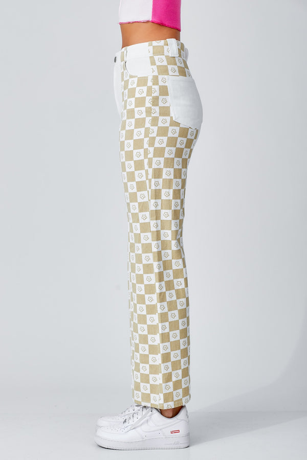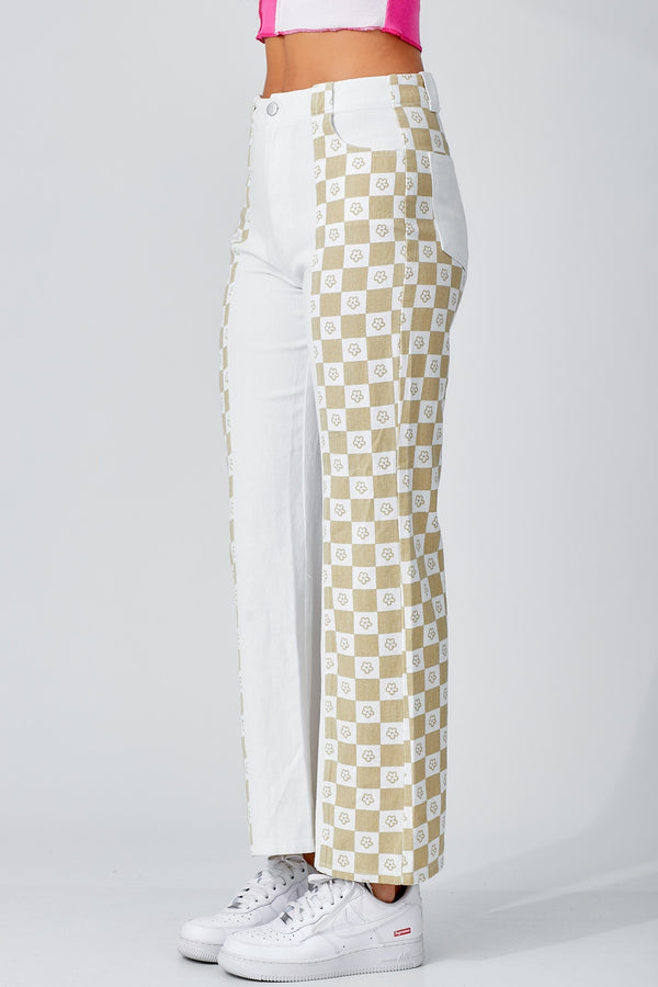Get ready to stand out in style with our Check This Out Pants! These unique straight leg denim pants feature accent checker panels that add a touch of personality to your closet. Versatile and easy to pair, these pants are a must-add piece for your stash!