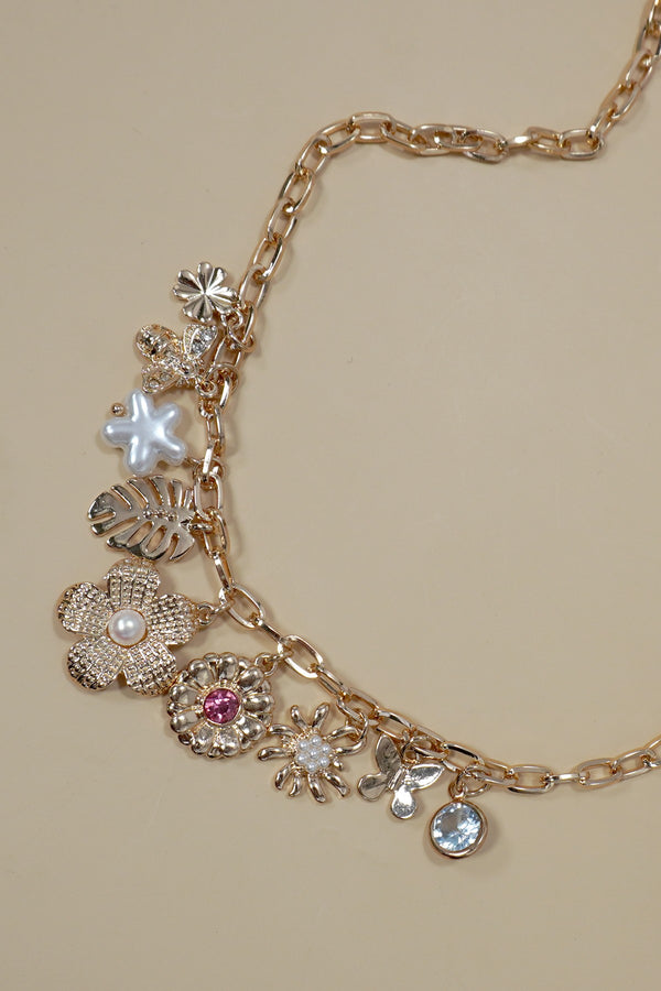 Let your style take flight with the Fairy Garden Charm Necklace! This whimsical piece features beautifully detailed charms of flowers, leaves, bees, and butterflies. The gold plating ensures it stays looking magical for a long time. Lead and nickel compliant, anti-tarnish for charm that lasts!
