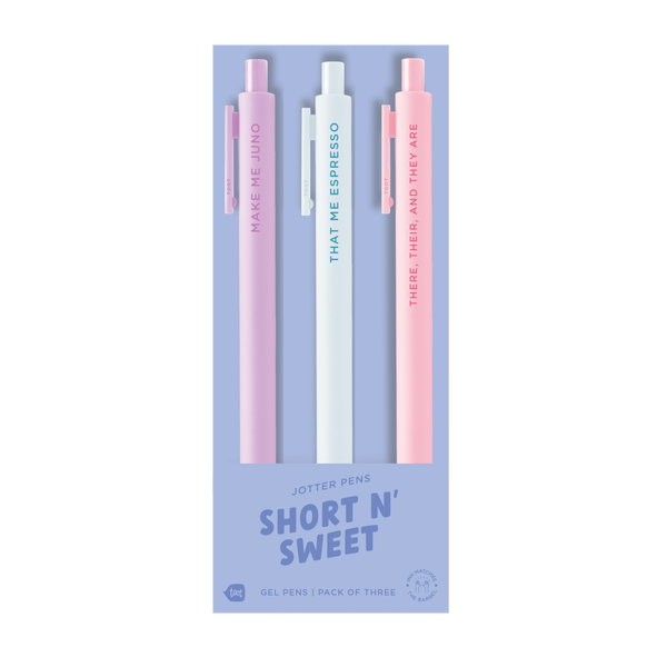 We have Jotter Pens and we did them WRITE with bright colors and a lot of attitude. The soft-touch barrel surface and fine-point gel tip will make this pen your new favorite. It's definitely doodle bug approved. And guess what? The gel ink matches the pen color! (Navy, Gold, White, Grey, and Metallic pens have black ink..) So whether you're signing official documents or doodling your life away, your thoughts will shine bright.