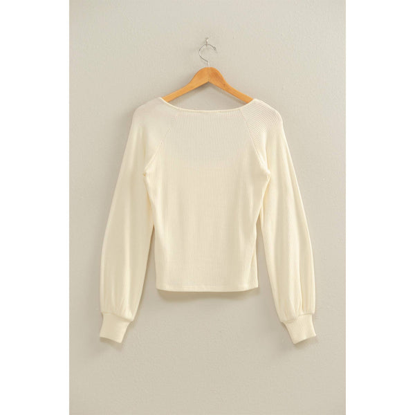 Romance awaits in this cheeky sweater top that proves "square" is anything but boring! The structured square neckline and dreamy balloon sleeves create instant sophistication, while the fitted-style bodice hugs your curves in all the right ways. Modern, classy, and undeniably flattering, this piece transitions effortlessly from skirts to denim to trousers. Whether you're dressing up or keeping it casual, this top delivers the perfect blend of elegance and playful charm.