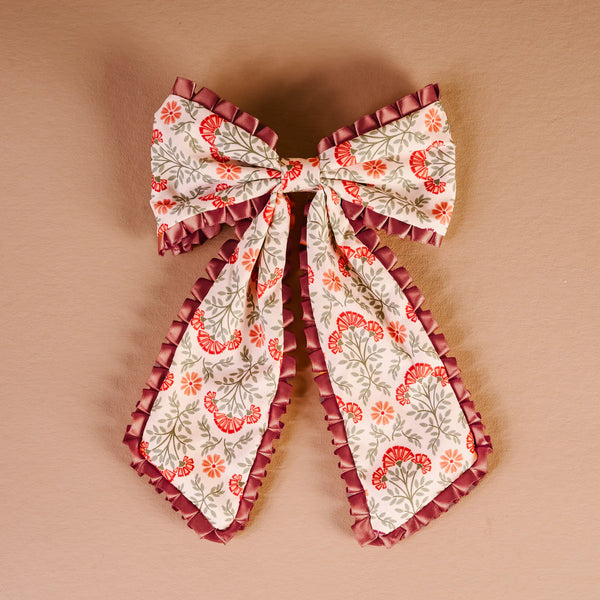 Add a little extra flair with our Fancy Frills Hair Bow—a statement style with irresistible charm. Featuring a larger-than-life silhouette, playful prints, and a sweet ruffle edge, this puffy bow is made to turn heads. Crafted from soft, high-quality fabric and finished with a gold barrette clip, it's equal parts pretty and practical—perfect for dressing up any day with a touch of darling drama.