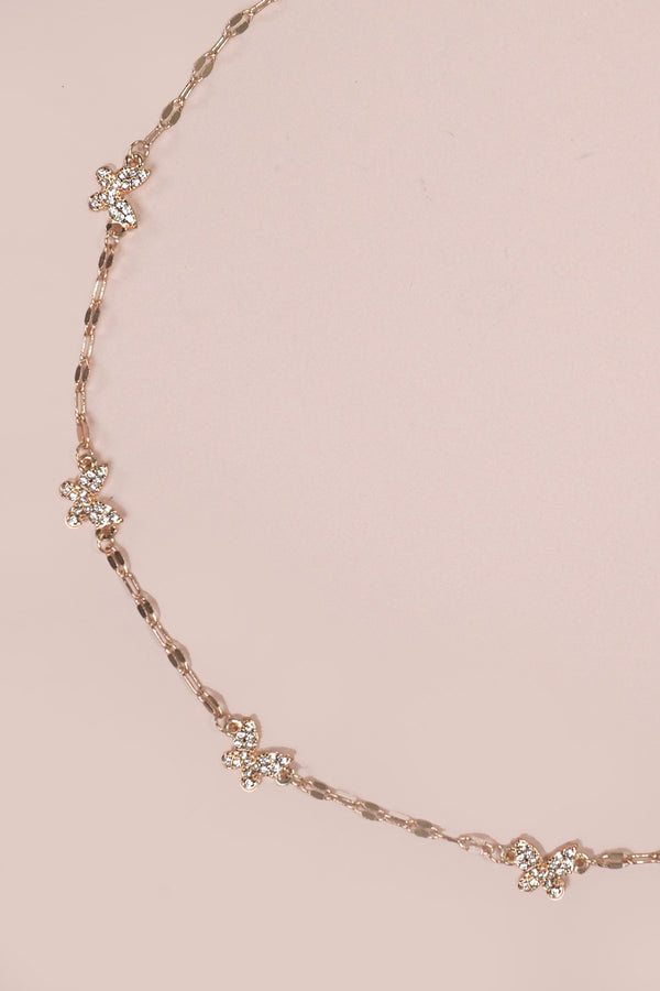 Add a touch of whimsy to your outfit with our Whimsical Butterflies Necklace. Featuring shimmering rhinestone butterflies spaced along a fine chain, this lightweight and elegant necklace is perfect for everyday wear. Makes a great gift for the trendsetter in your life.