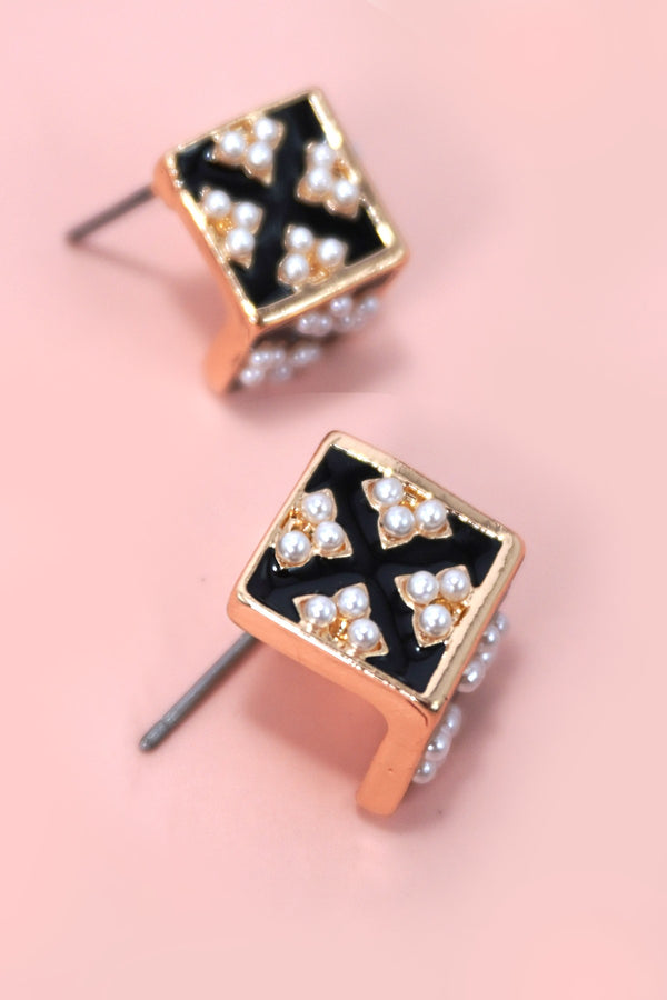 Discover a new level of style with our X Marks The Spot Stud Earrings! These Pearl Checker Cube Stud Earrings feature a unique cube design with alternating pearl accents, combining timeless elegance with modern flair. Titanium posts provide durability and comfort for sensitive ears. (Made with titanium posts for durability and hypoallergenic wear.)
