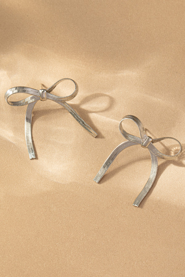 Add a touch of girly charm with these Bow-tiful Chain Earrings. Featuring a soft, smooth flat herringbone chain shaped into an elegant bow, these earrings sparkle in your choice of gold or silver plating. Perfect for adding a playful yet refined finish to any outfit, they’re delicate enough for everyday wear but special enough to turn heads. Pair with the matching choker for a perfectly polished set.
