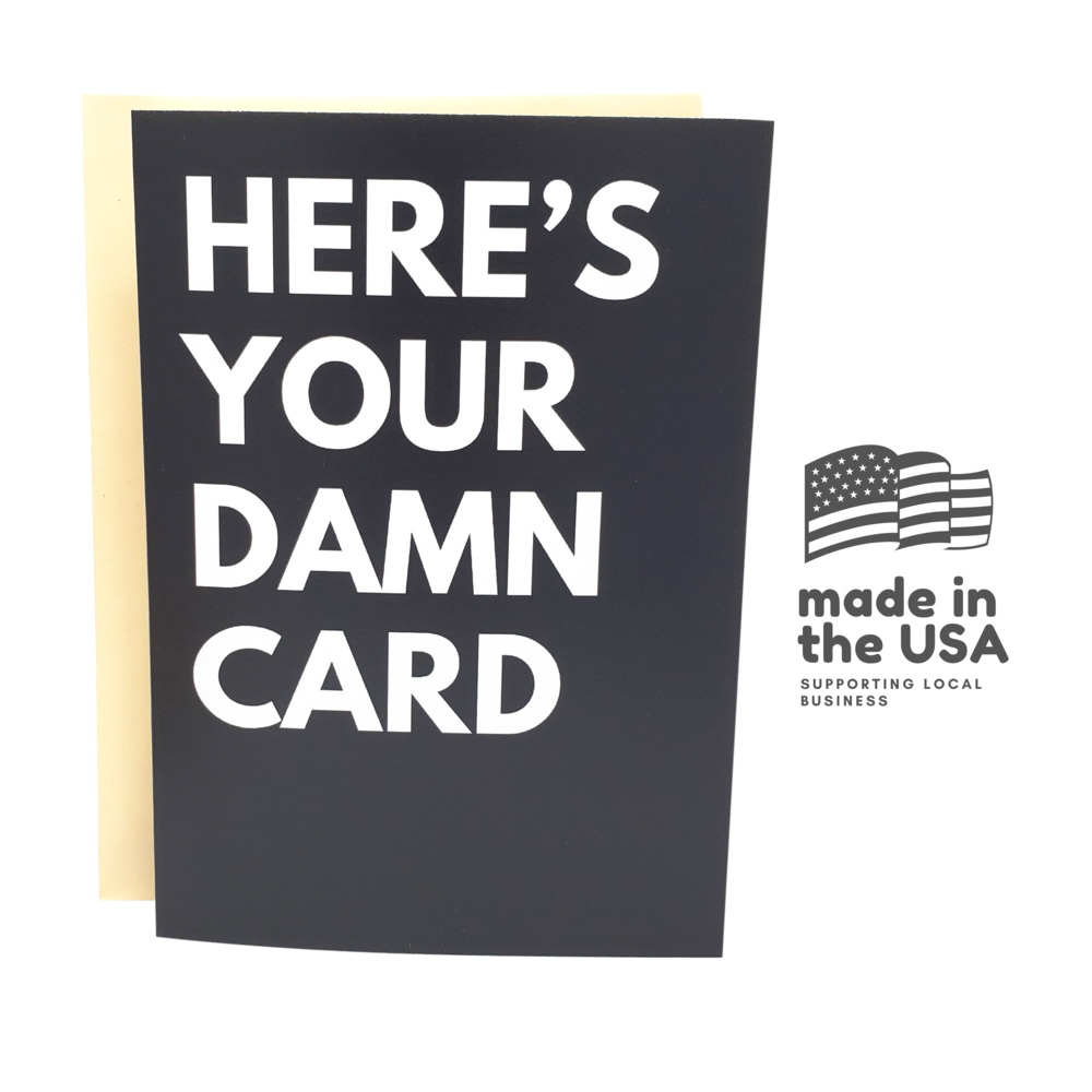 Introducing the best witty birthday card you’ve ever seen! Whoever invented the idea of “birthday cards” surely didn’t know just how damn popular you were! Thankfully this funny card caters to a wide range of audiences, making the job easy for you. Send this piece of magic to that sarcastic someone on their special day. Sure to produce a laugh, this high-quality card is printed on black recycled card stock with white lettering and topped with a matte coating. Inside says, "Enjoy it. Now leave me alone."