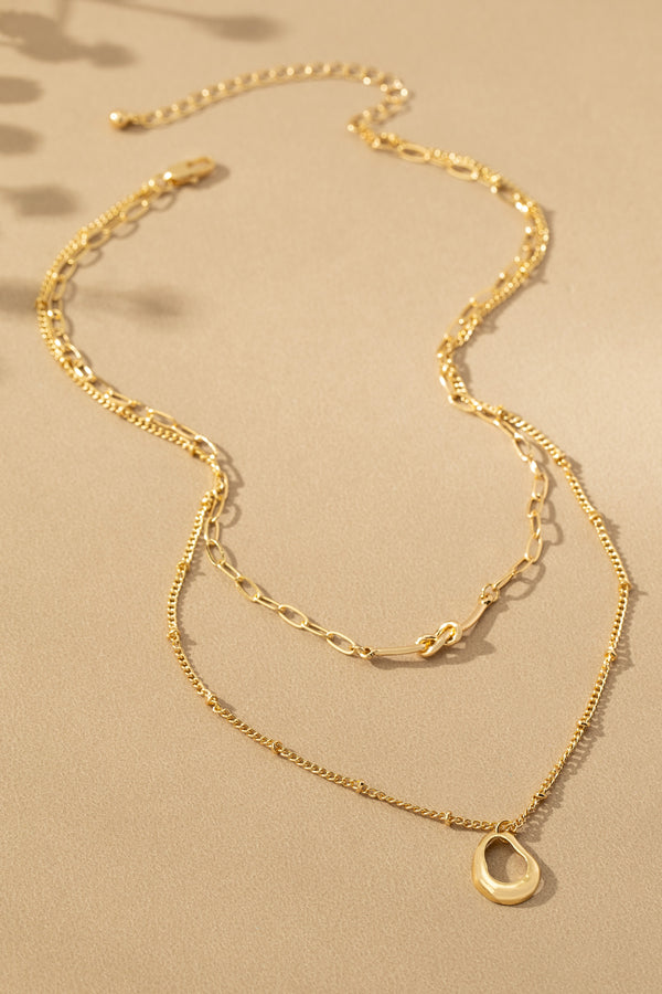 Add a splash of playful elegance to your look with the Knot So Fast Layered Necklace. Featuring a chic two-layer design, the shorter chain flaunts a knotted bar pendant on a trendy paperclip chain, while the longer chain showcases a smooth, organic-shaped charm. Made from a durable alloy with shiny gold plating, this necklace promises both style and lasting wear. The adjustable lobster clasp with a 2-inch extender guarantees a comfortable fit. Wear it solo for a subtle sparkle or mix it up with other dainty chains to turn heads wherever you go!