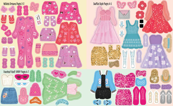 All Swifties will enjoy screen-free fun with this amazing sticker book that encourages hours of unlimited imagination and play. Use the shimmer stickers to help fans get ready for the concert by creating their own Swiftie outfits before watching the singer slay on stage. An album allows Swifties to select and save all their favorite moments. With 5 pages of reusable clothing and accessory stickers, children will love exploring their creativity by creating their own outfits, scenes, and of course—STYLE!Contains over 500 reusable shimmer stickers plus a fold out sticker closet to help users organize their sticker fun