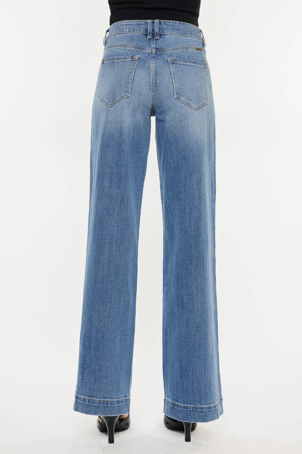 The Tatum High Rise Trouser Denim is your go-to for a fun, flattering fit! These wide-leg jeans sit above the waist and flow loosely down the leg, offering both comfort and style. Crafted from a stretchy blend of 99% cotton and 1% spandex, they provide just the right amount of give. With a medium wash, subtle fading, and light whiskering, plus deep front pockets and a zip fly with single button closure, they're perfect for expressing your personality without sacrificing style.