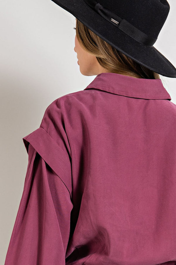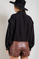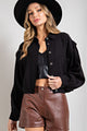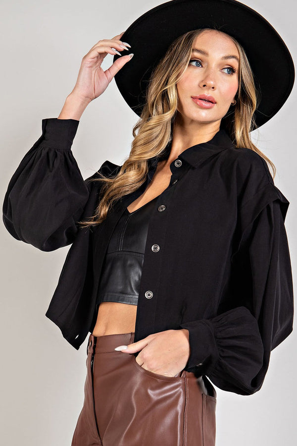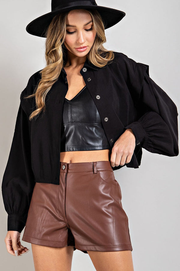 Looking for a versatile piece that's perfect for going out and for work? Look no further! Our Out On The Town Cropped Shacket adds some edge to any look. With its cropped style, buttoned cuffs and collar, it can be worn open with a cami or closed -- the choice is yours! So whether you're staying in or going out, you'll be ready to step up your fashion game!