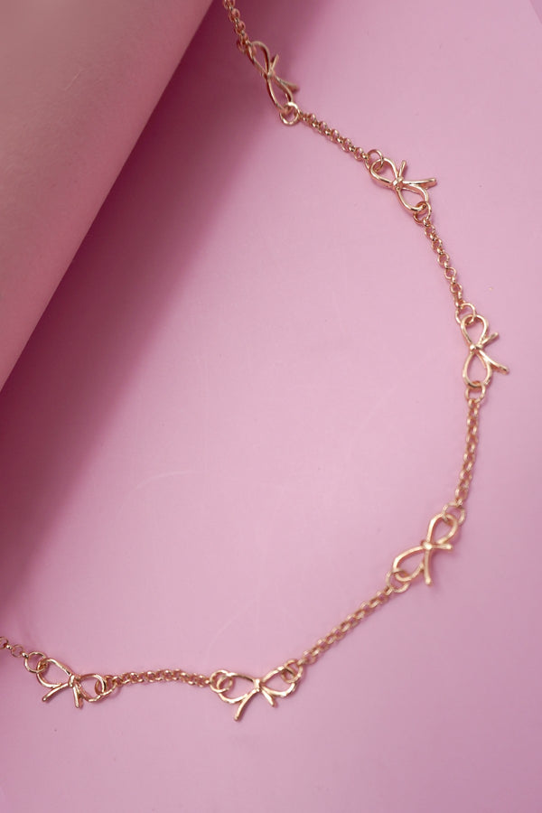 Add a touch of playful elegance with this Petite Bow Necklace. Featuring a delicate gold-plated chain adorned with charming bow stations, it’s the perfect accessory to layer or wear solo. The 15.5" length with a 3" ball chain extender ensures a comfy fit, while the lobster claw clasp keeps it secure. Finished with double E-coating, this necklace resists tarnish and is lead and nickel compliant for safe, lasting wear. Elevate your look with a little bow magic!