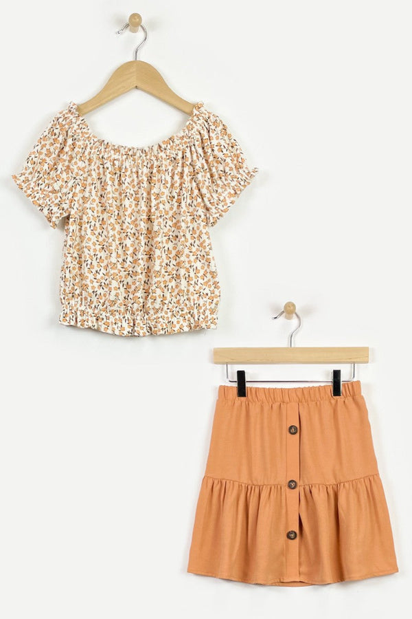 This Piper Peasant Top & Tiered Skirt Set is your ticket to an adorable, florally-fabulous look! This youth set includes a floral print peasant top and a coordinating tiered skirt complete with button-down detail – perfect for a whimsical garden party! Get your mini-me ready for some fresh style in this sweet ensemble!