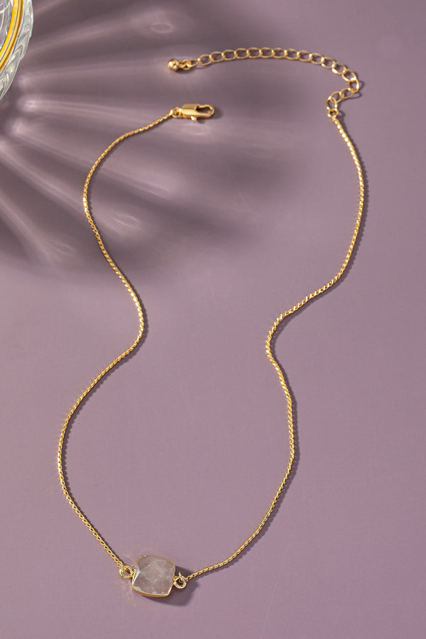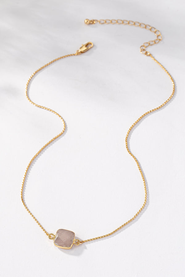 Add a touch of magic to your look with this charming square pendant necklace, featuring natural rose quartz or smokey grey quartz stones. Suspended on a shiny gold-plated brass chain, it comes with a 16" length plus a 3" extender for a perfect fit every time. Whether you’re feeling rosy or mysterious, this necklace adds just the right sparkle to your day.
