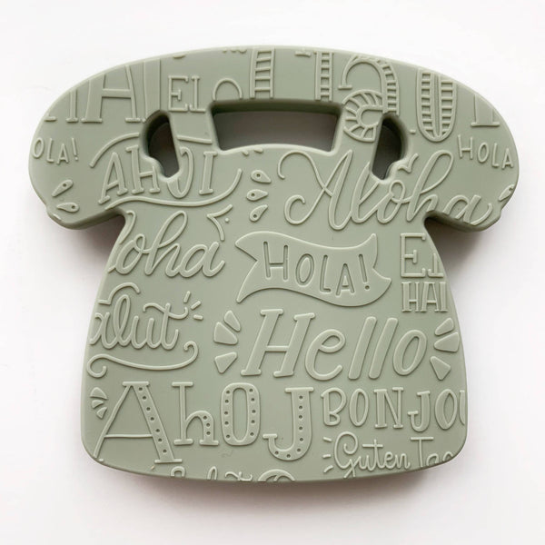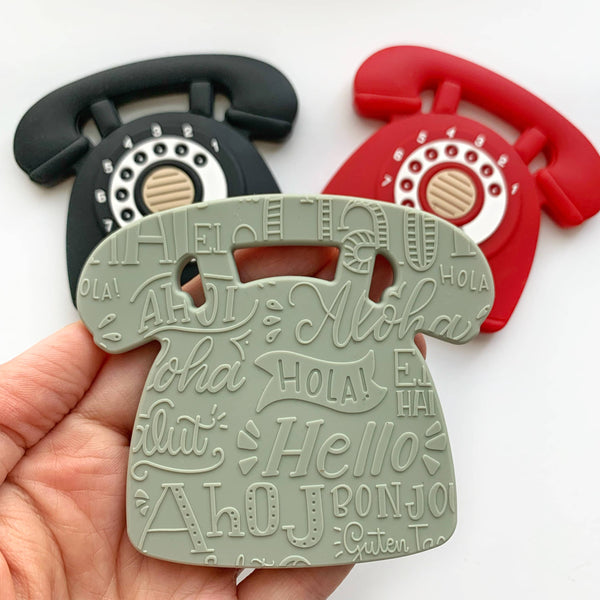Call me baby!! Another throwback from Gummy Chic. This is an exclusive GUMMY CHIC teether (designed by owner- Claudia).This teether offers multiple textures front and back to provide the best sensory surfaces for much needed teething relief. These are soft yet durable even for those avid chewers. This design is not only fun for parents but also for kids alike. Made from 100% food grade silicone and free from harmful chemicals. Manufactured in China.