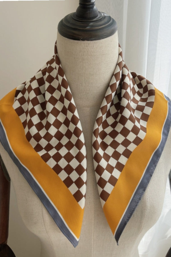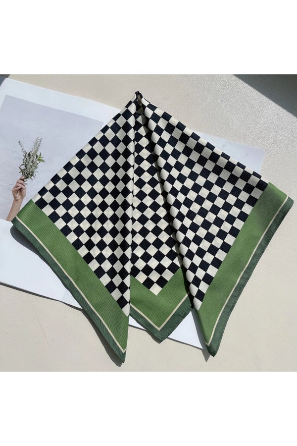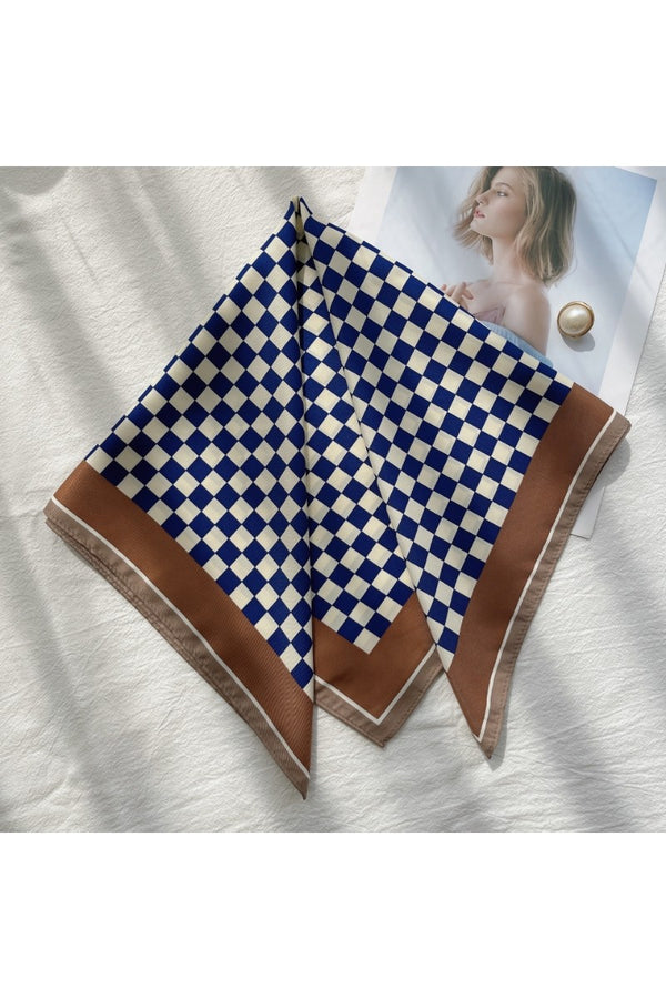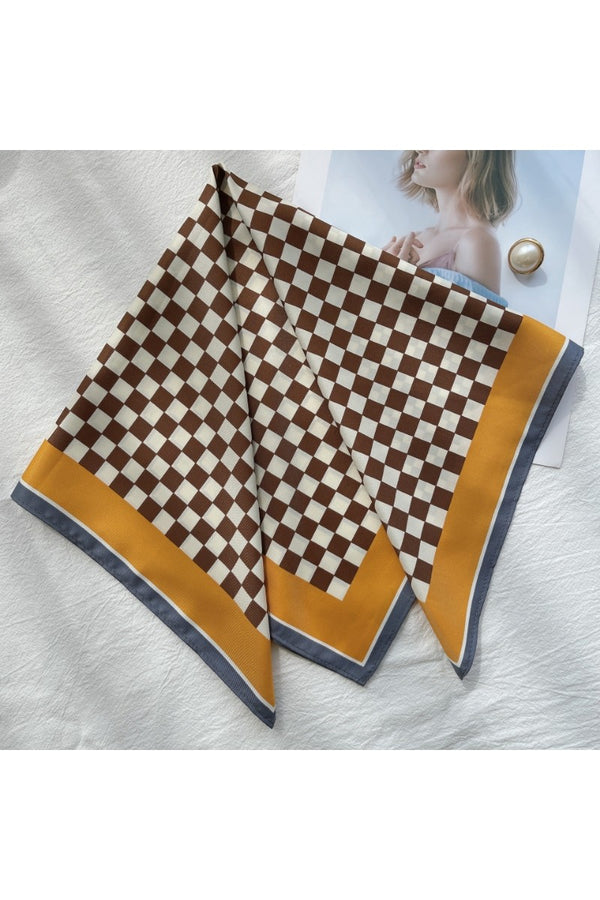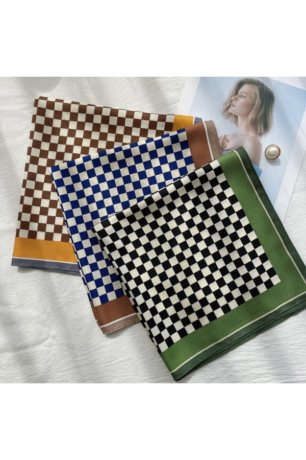Add a splash of fun to your outfit with the Vibe Check Scarf! This checkered print square scarf, crafted from smooth faux silk, comes in black, blue, or brown to match your mood. Perfect for tying around your neck, wrist, or bag, it’s the playful accessory that instantly ups your style game.