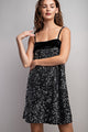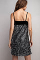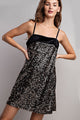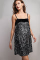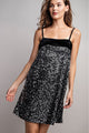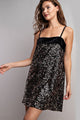 Get ready to dazzle in our Dazzling Delight Dress! Available in Gold Sequin or Silver Sequin, this velvet two tone mini dress is perfect for holiday parties. With a side zipper, spaghetti straps, and a square neckline, it's both elegant and flirty. A must-have for any festive occasion!