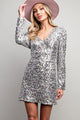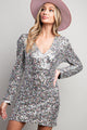 Be the star of the party with our Diamonds In My Eyes Dress! This showstopping silver sequin mini dress features long sleeves, a fitted silhouette, and a zipper closure for maximum comfort. Perfect for New Year's Eve or any holiday party, this dress will add a touch of glamour and elegance to your look. Get ready to shine!
