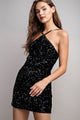 Get ready to turn heads in the Dressing For Revenge Halter Dress! This luxurious velvet sequin mini dress features a sultry spaghetti strap halter neck and adjustable straps for the perfect fit. With a slightly fitted body, it's perfect for showing off your curves. Dress it down with a denim jacket or dress it up with a blazer for a wow-worthy holiday party look. Chic and sexy with a touch of NYE flair, this dress is sure to be a showstopper!