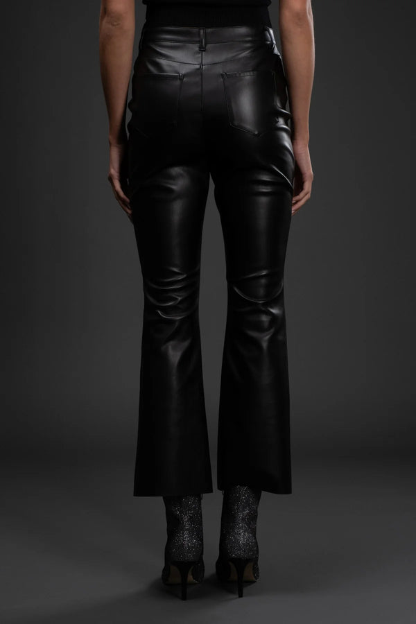 Elevate your holiday look with our Flirty Faux Leather Pants. These high waisted pants feature belt loops, a button closure, and front and back pockets. Made of faux leather, these bootcut pants are perfect for a fun and flirty NYE or Christmas outfit. Pair with a graphic tee or cozy sweater for a playful touch.