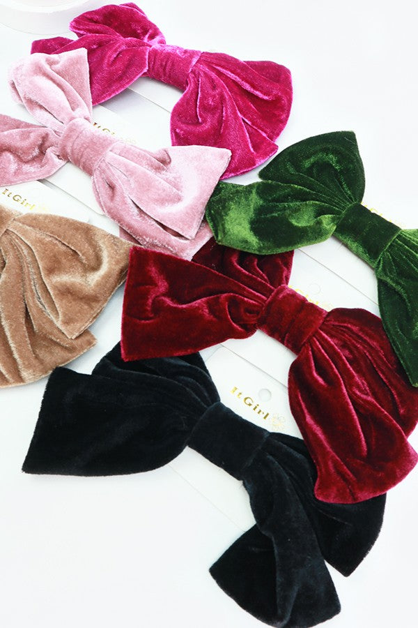 Add a touch of girly fun to your holiday hair with our Velvet Bow Clip! These large bow clips are made with rich, soft velvet and come in 6 vibrant colors. Perfect for all hair types, these alligator clips will keep your hair in place while adding a charming bow to your look.