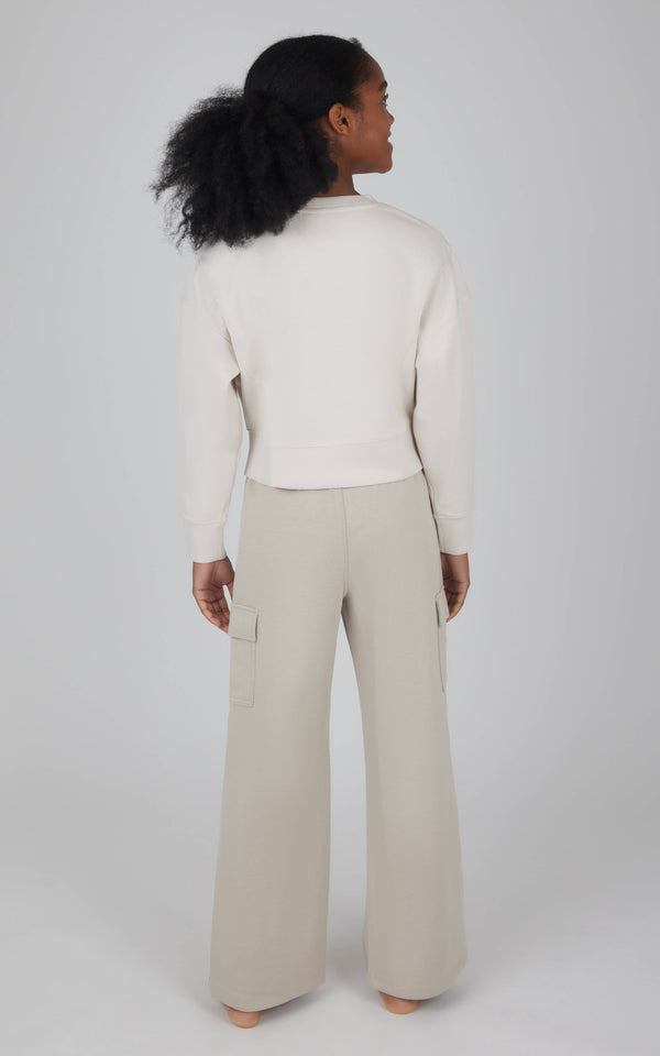 This two-piece set is the ultimate go-to for every tween's wardrobe! Featuring a cozy scuba pullover and coordinating wide-leg cargo pants, it's built for comfort and style. The soft, lightweight fabric keeps her cool whether she's heading to school, crushing it at practice, or hanging with friends. Practical cargo pockets add function, while the relaxed fit ensures she can move freely all day long. The timeless monochrome neutral palette pairs with everything—talk about versatility!