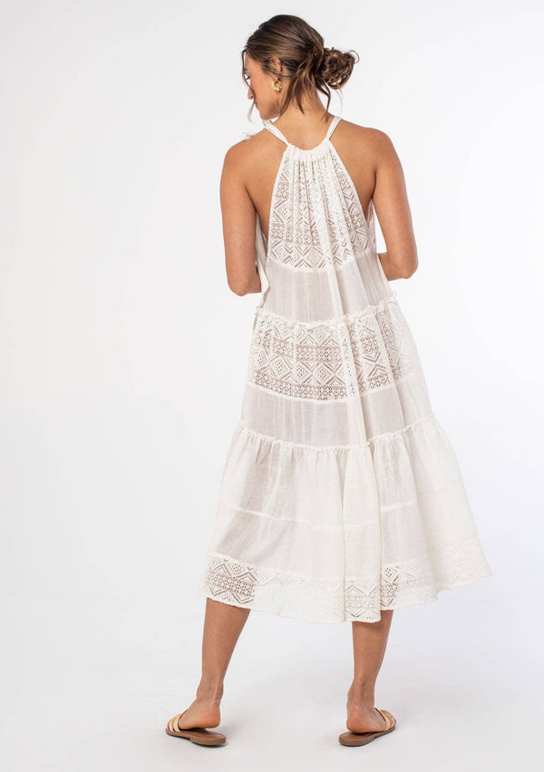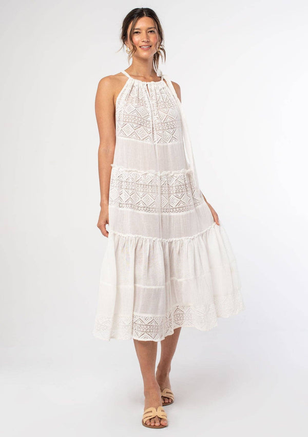 Get ready for some serious vacation vibes with our Coastal Breeze Halter Dress. Made from airy cotton, this midi dress features a relaxed and flowy silhouette, along with charming crochet and distressed details. Complete with a tie shoulder and tiered bottom, it's the perfect bohemian cover-up for the beach. Stay cool and stylish in this must-have dress.