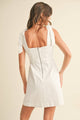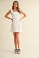 Say hello to your new favorite dress! The Tied To You Dress features adorable tie shoulder straps and a flirty square neckline that's sure to boost your confidence. Made from stretch white denim that hugs your curves just right, this form-fitting cutie comes with a convenient back zip for easy on-and-off. Perfect for graduation celebrations, bridal events, or anytime you want to feel extra girly and cute! It's the dress that ties your whole look together!