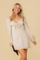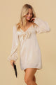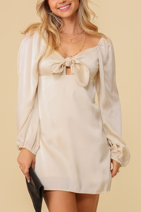 Make a statement with our Feminine Front Tie Dress! This charming babydoll dress is made from silky satin and features a v-neckline, puffy sleeves, and a box tie at the front. With a dainty keyhole and a back zipper for a perfect fit, this dress is perfect for any occasion, from Valentine's Day to spring and beyond. Embrace your femininity and turn heads wherever you go.