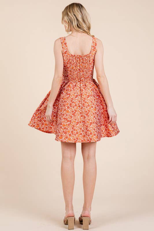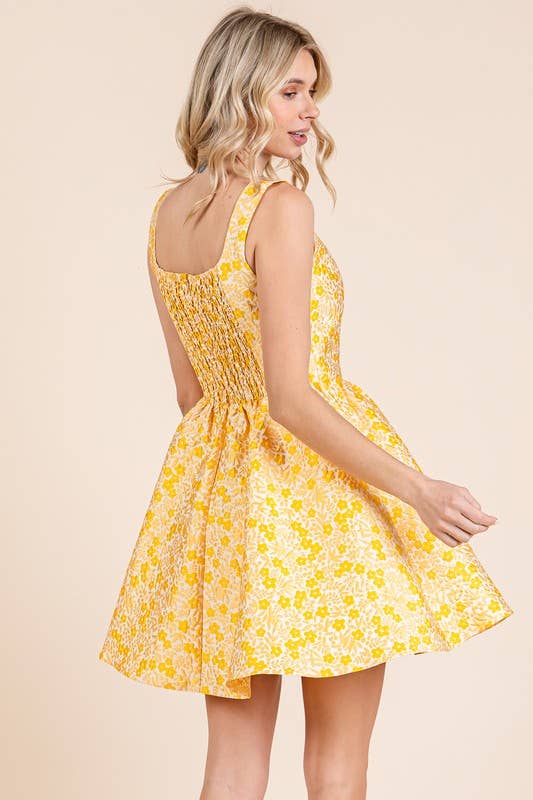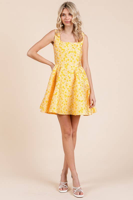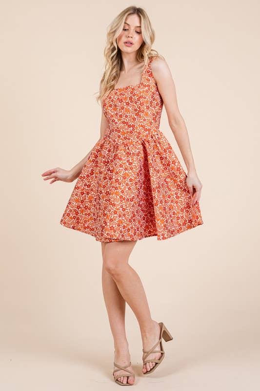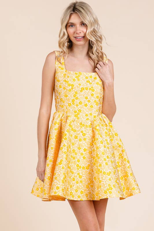 The Charming Flare Jacquard Dress brings a burst of floral fun to your special occasions. With its fit-and-flare silhouette, circle skirt, and playful square neckline, this sleeveless mini dress is both cute and stylish. The smocked back and zipper closure ensure a perfect fit while adding a flirty touch. Fully lined for comfort, it’s ideal for grad parties, weddings, or showers—making every moment feel whimsical and lovely in vibrant orange or sunny yellow.