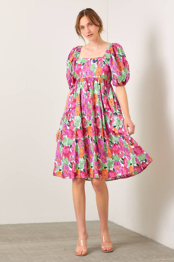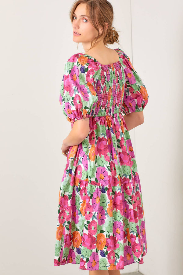 Get ready to bloom in this playful Garden Blossom Midi Dress. Featuring a bold floral print, puff sleeves, and square neckline, this dress is perfect for a garden tea party. With the added functionality of side pockets and a knee length, you can be stylish and practical at the same time. It's the perfect dress for the ultimate garden party look!