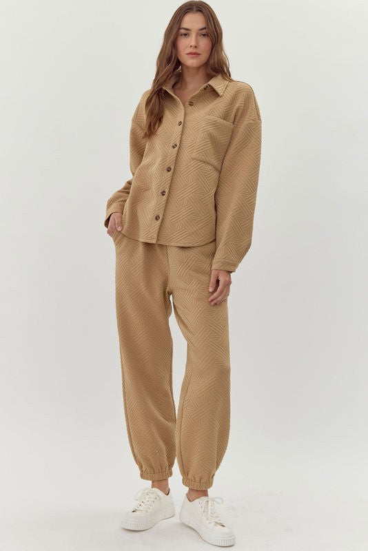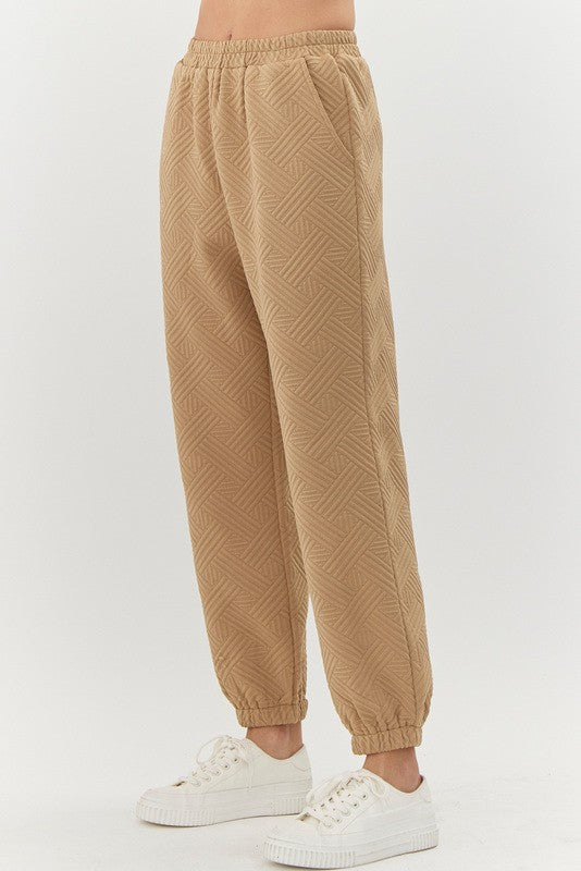 Elevate your comfy chic vibe with our In It To Win It Joggers. These textured pants feature a stretch waistband and side pockets, providing a perfect combination of comfort and style. Pair with our Classic Cropped Tee and matching In It To Win It Shacket for an effortlessly put together look.If you really want to level up the fit add some chunky gold jewelry and white sneakers.