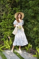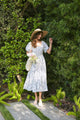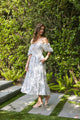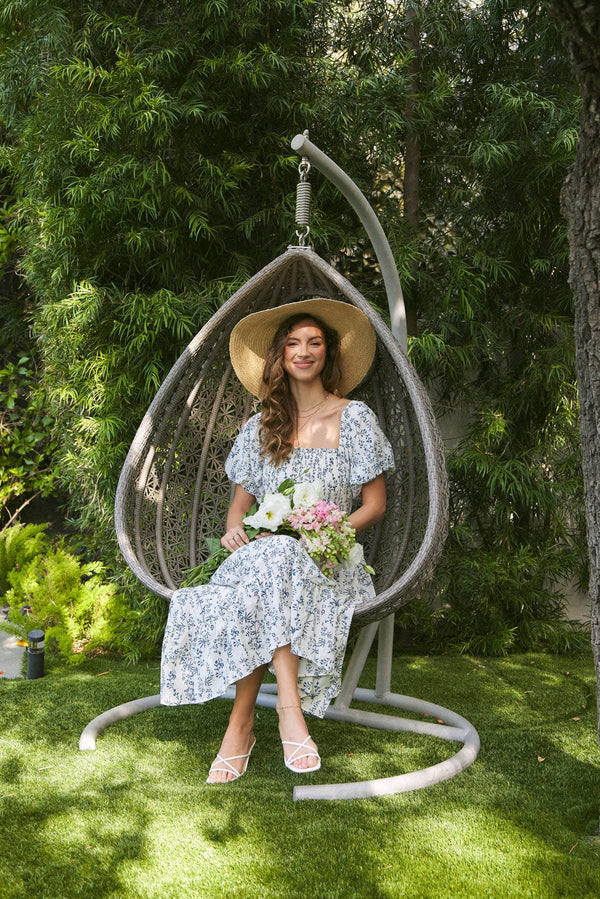 The Something Blue Midi Dress brings romance and fun together with its playful leaf print and smocked square neck. Wear it on or off the shoulder for two charming looks, while the short bubble sleeves add a flirty touch. Made from lined 100% cotton, this midi dress feels light and comfy, perfect for twirling through sunny days or breezy evenings.
