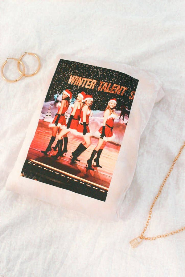 Show off your love for this iconic scene with our Christmas Talent Show tee. Featuring a light pink tie dye design (a nod to the iconic "on Wednesdays we wear pink") and a fun Mean Girls reference, this tee is the perfect blend of millennial nostalgia and holiday cheer. So go ahead, be "so fetch" this holiday season.
