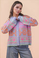 Embrace the season with this charming Fair Isle cardigan that brings Valentine's romance to your spring wardrobe. Featuring a relaxed oversized fit and drop shoulders, this button-down beauty showcases a delightful mix of hearts, flowers, and wavy lines in cheerful blues, pinks, purples, and oranges. The collared neckline and long sleeves add timeless appeal, while the graphic knit pattern makes it perfect for layering over your favorite tees. Sweet, playful, and undeniably cozy—this is the cardi that makes every day feel a little more magical.