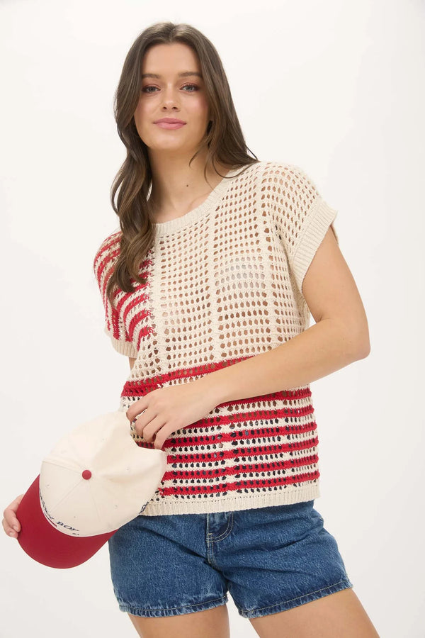 Americana Stripe Sweater Top || Cream/Red or White/Blue